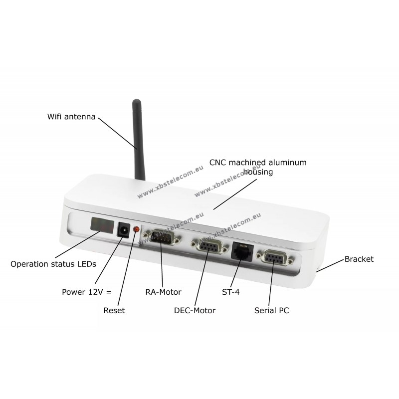 8 CPUs and a Wi-Fi Ethernet 10/100 adapter with IP functionality. This allows remote operation via browser, ASCOM, app, or serial connection. With Open GoTo, custom firmware can also be written and loaded into the controller unit, allowing